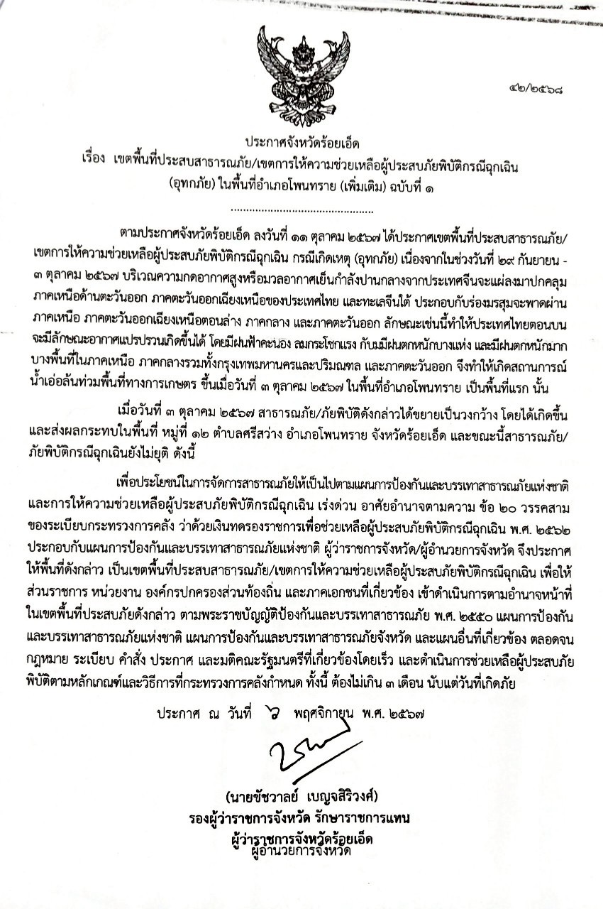 📄 แสดงไฟล์: อ.โพนทราย 03102567 เปิดอุทกภัย เพิ่มเติม ฉบับที่ 1.jpg