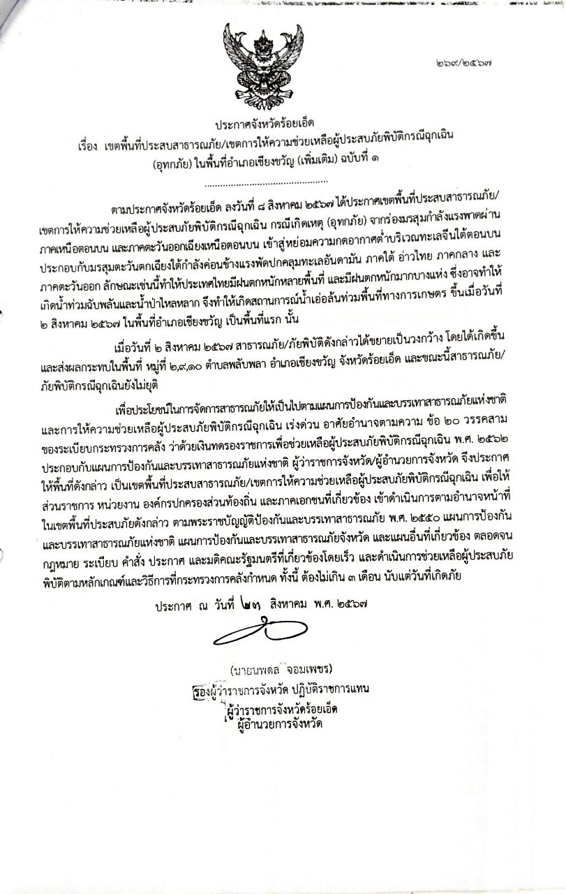 📄 แสดงไฟล์: อ.เชียงขวัญ 02082567 เปิดอุทกภัย เพิ่มเติม ฉบับที่ 1.jpg